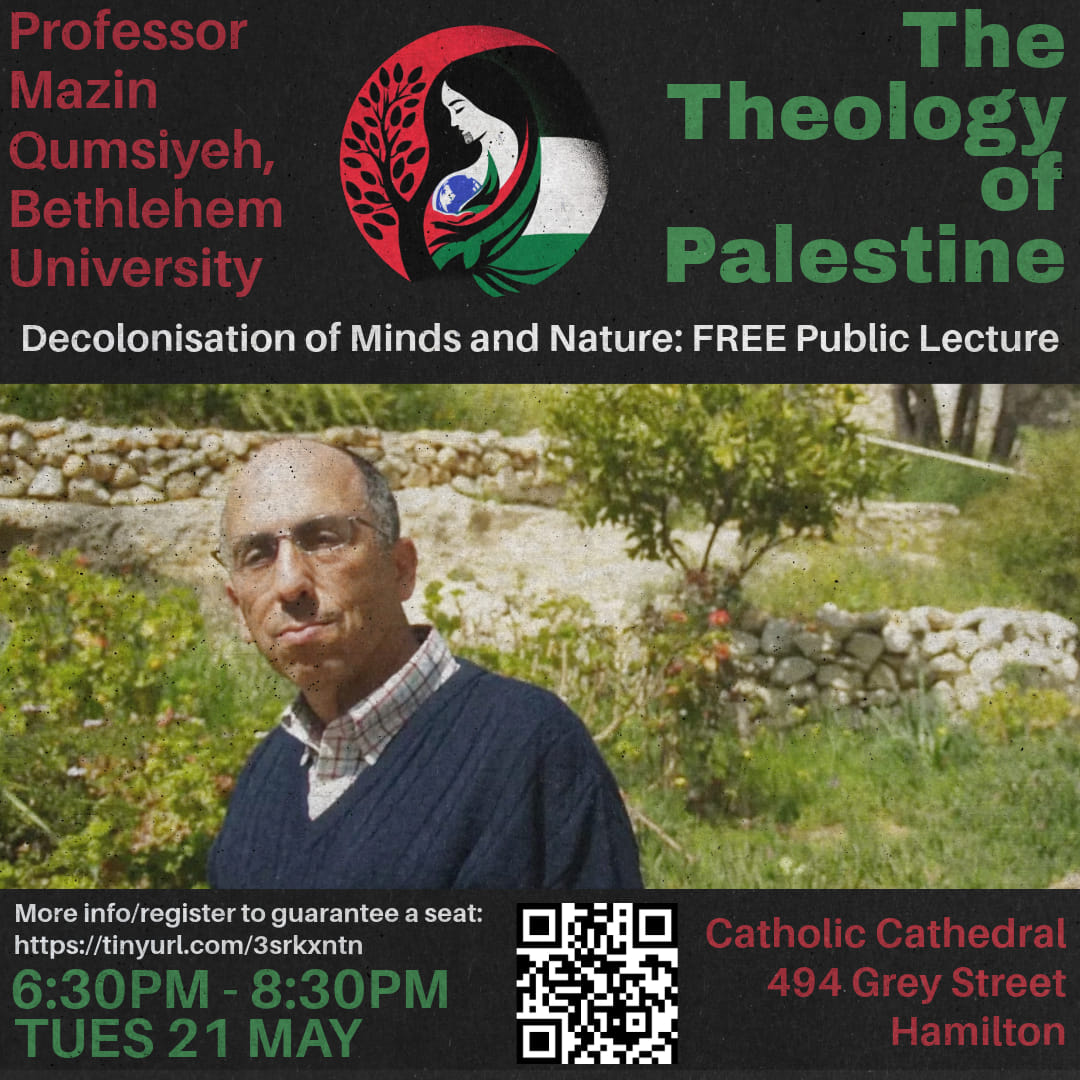 His lecture on 21st May will address the impacts of occupation on people and nature, decolonization, and the role each of us can play as global citizens.